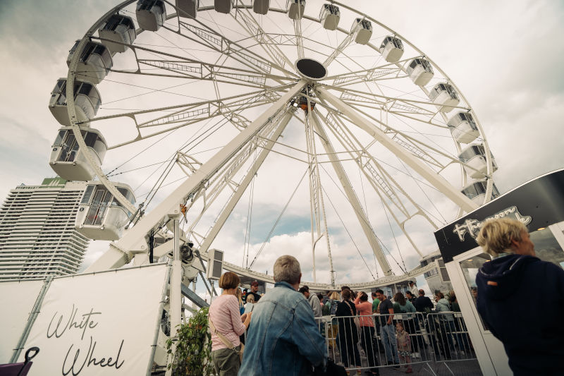 Das White Wheel ist ein modernes Event-Riesenrad, das sich durch sein schlichtes weißes Design nahtlos in jede Kulisse einpflegt. Die 23 geschlossenen Gondeln sowie eine barrierefreie, ebenfalls geschlossene Gondel bieten den Besucherinnen und Besuchern mehr Sicherheit. Dadurch können sie ihr Höhenerlebnis vollkommen angstfrei genießen.